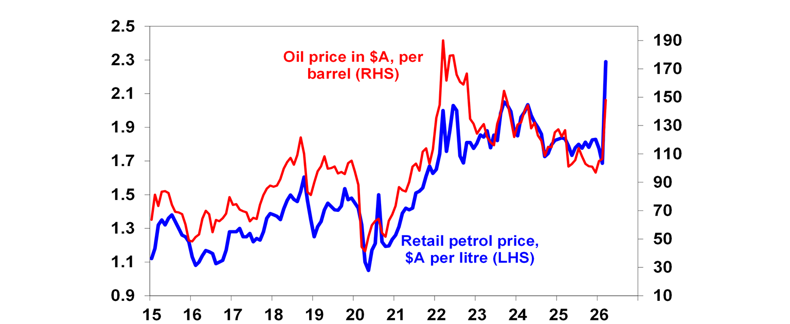 - Obviously if oil and hence petrol prices rise further the boost to headline inflation from higher petrol prices will rise. The longer oil supply is constrained the more oil prices risk going even higher and could reach say $US150 a barrel even if the War ends next month. This could add roughly another 50 cents a litre to petrol prices, adding another 0.7% or so to inflation.