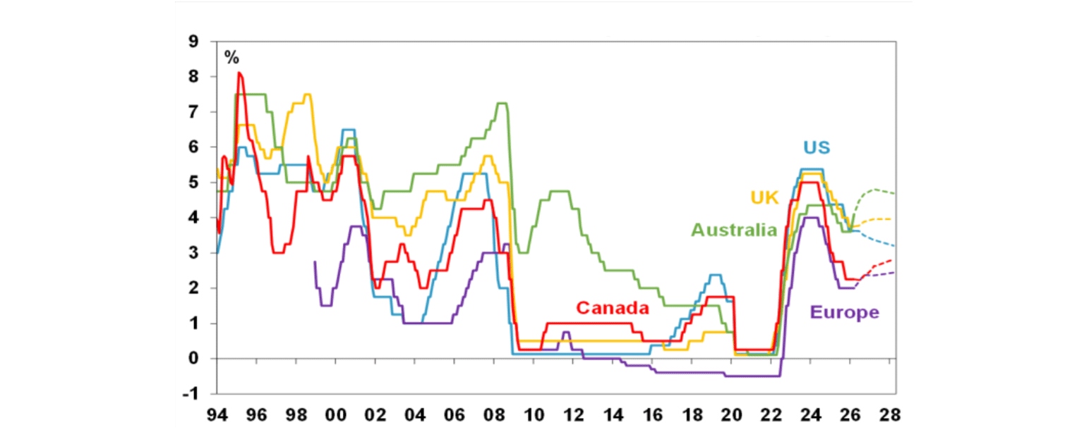 With the RBA hiking and the money market expecting nearly two more hikes by year end, interest rates in Australia are moving very differently to other major countries. This partly reflects inflation being further above target in Australia than in most other countries, but there is also a risk that the RBA has over-reacted.