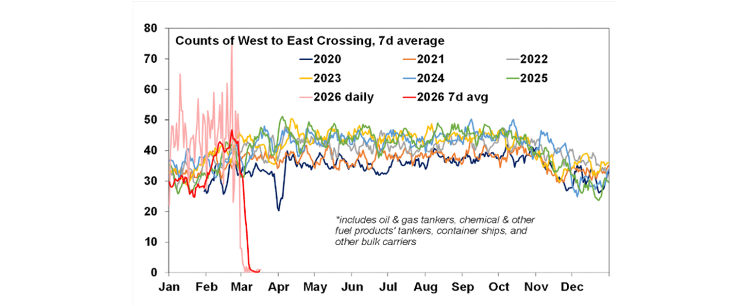 On balance we think that the potential significant hit to economic growth cannot be ignored by the RBA and is a reason why having hiked for two months in a row its now likely to remain on hold for several meetings at least to see how long the oil disruption lasts and to get a fuller picture of the inflationary and deflationary impacts from the crisis.